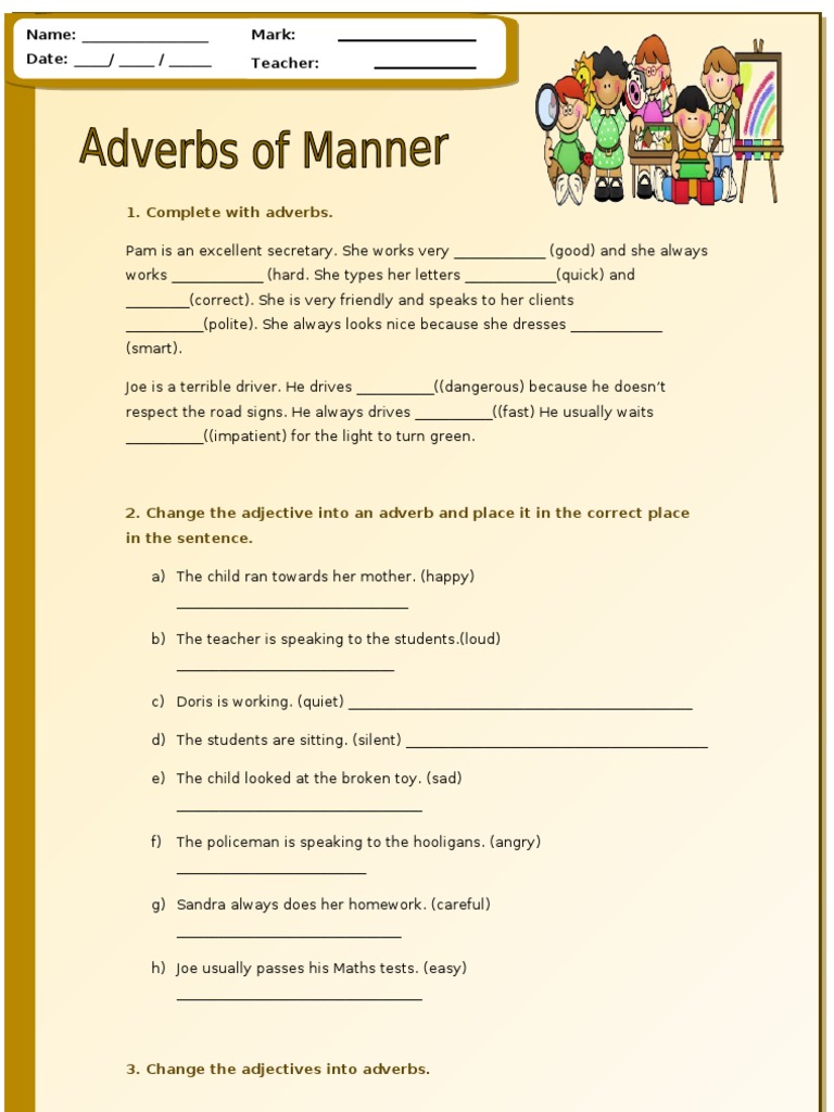 What Is Adverbs Of Manner / Guide To Adverbs Of Manner Worksheets Momjunction - He quickly drank the water.. Some adverbs describe the way something is done. Manner adverbs that modify clauses. Adverbs of manner tell us how something happens. Adverbs of manner in english; In this chapter the adverbs of manner in english will be explained.